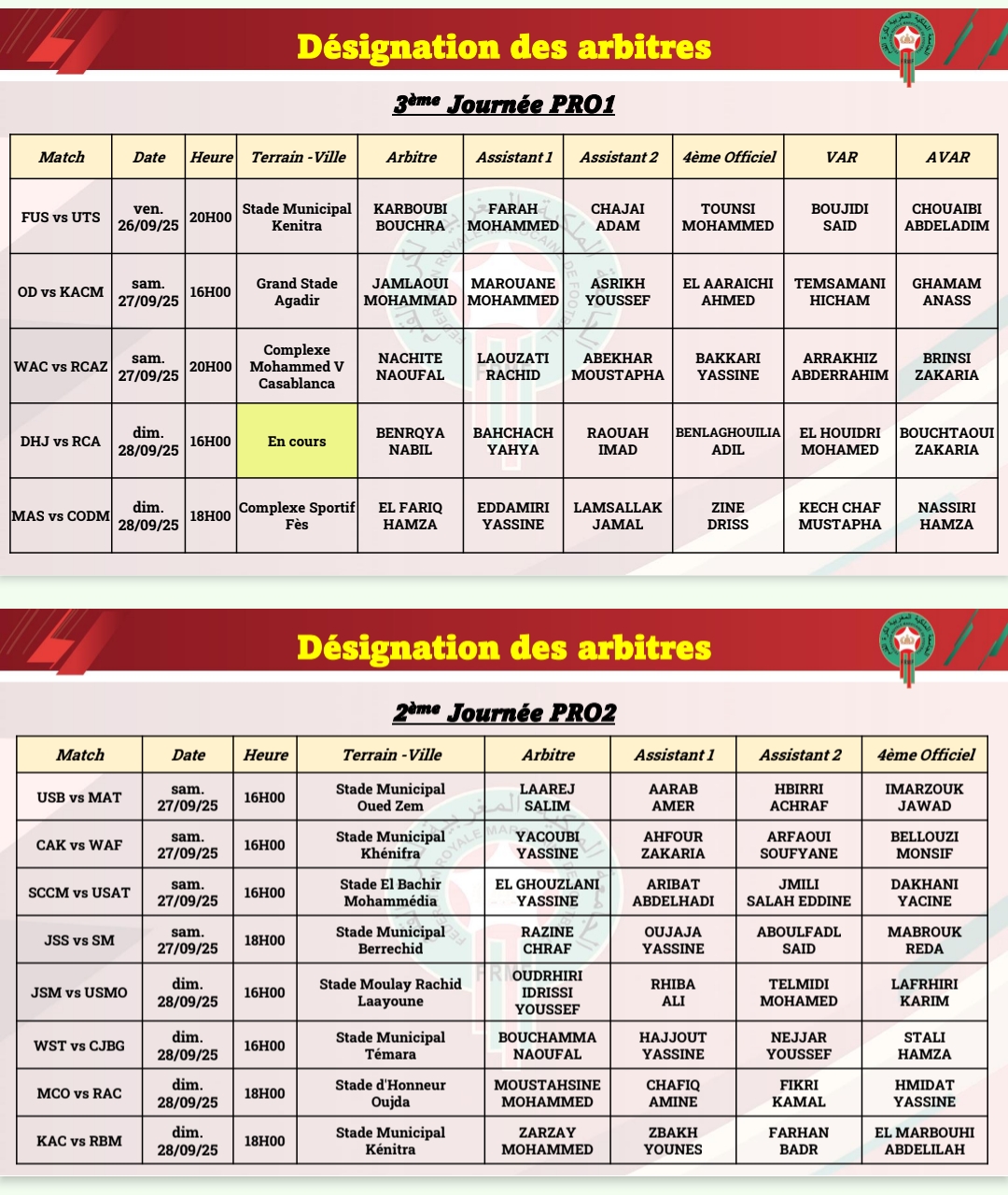 إليكم تعيينات حكام الدورة 3 من القسم 1 الإحترافي و الدورة 1 من القسم 2 الإحترافي.
