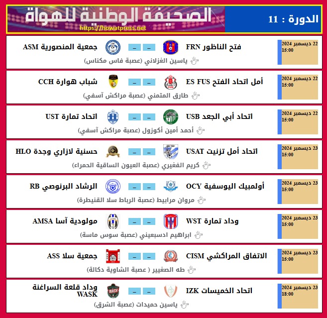 حصريا : تعيينات الدورة 11 للقسم الوطني هواة