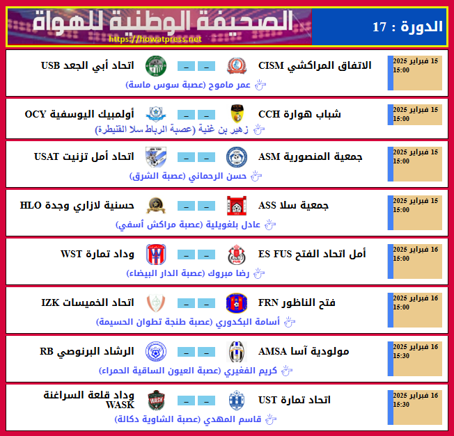 عاجل حصري : تعيينات حكام الدورة 17 للقسم الوطني هواة
