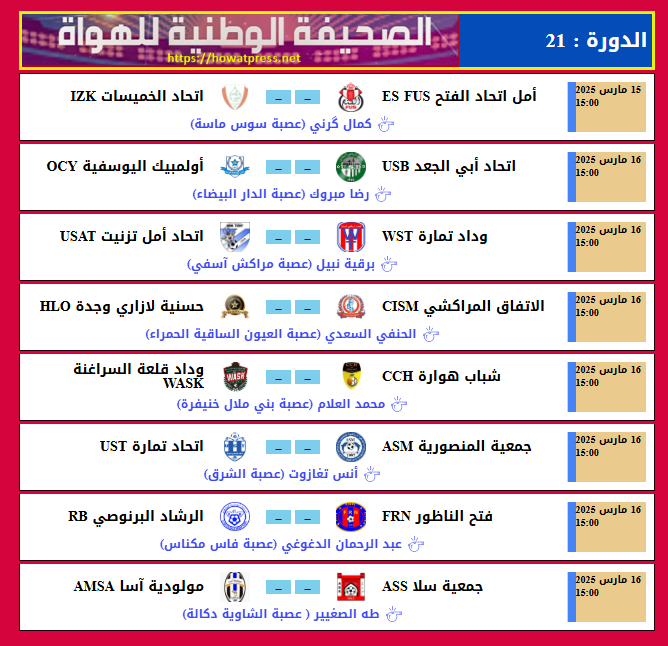 عاجل حصري : تعيينات حكام الدورة 21 للقسم الوطني هواة