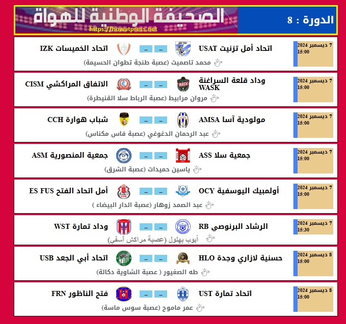 حصريا : تعيينات الحكام القسم الوطني هواة الدورة الثامنة .